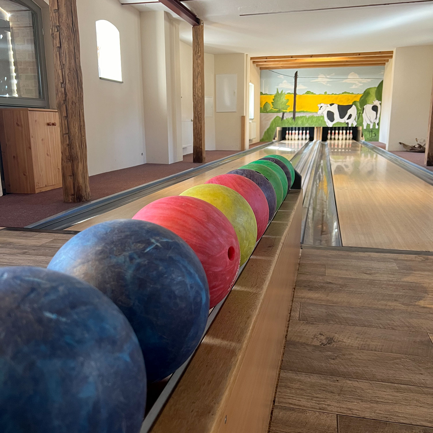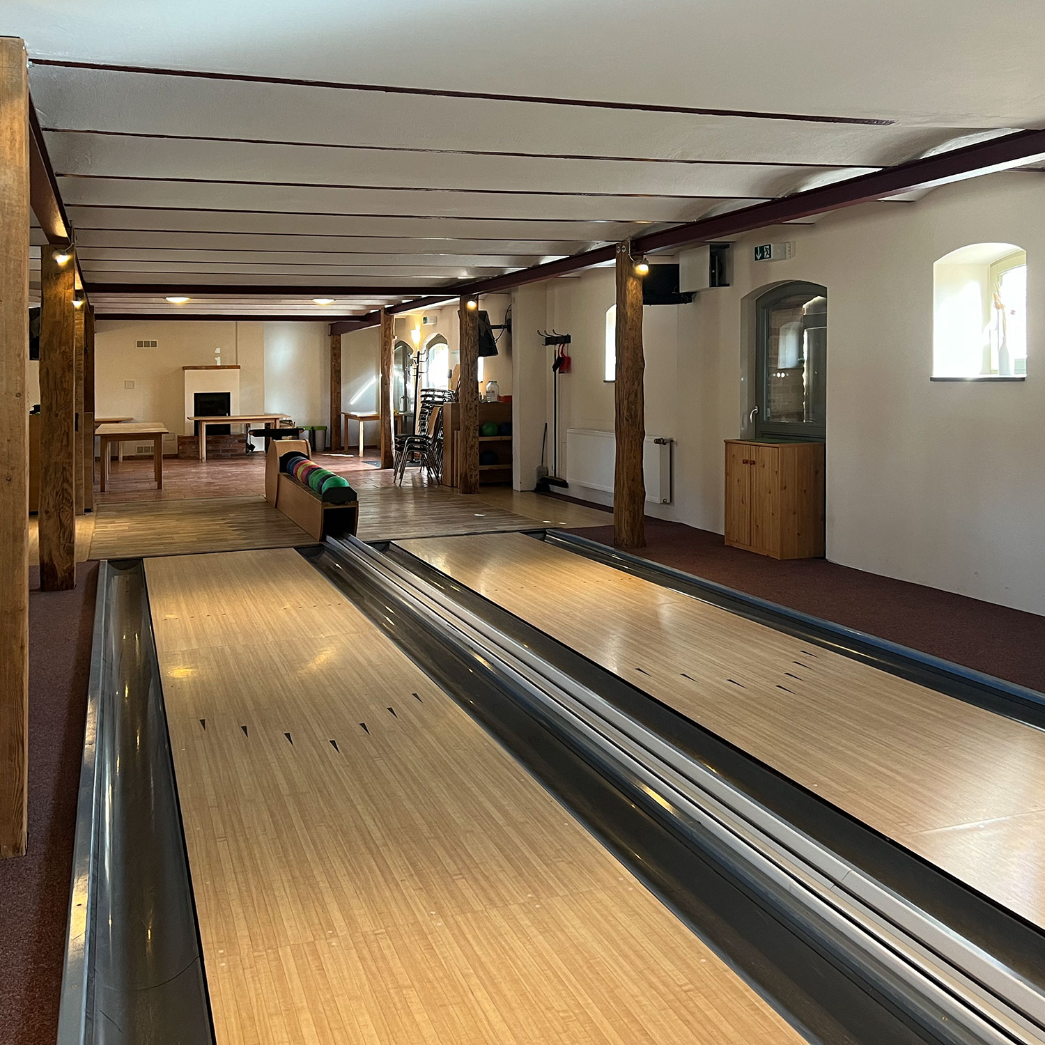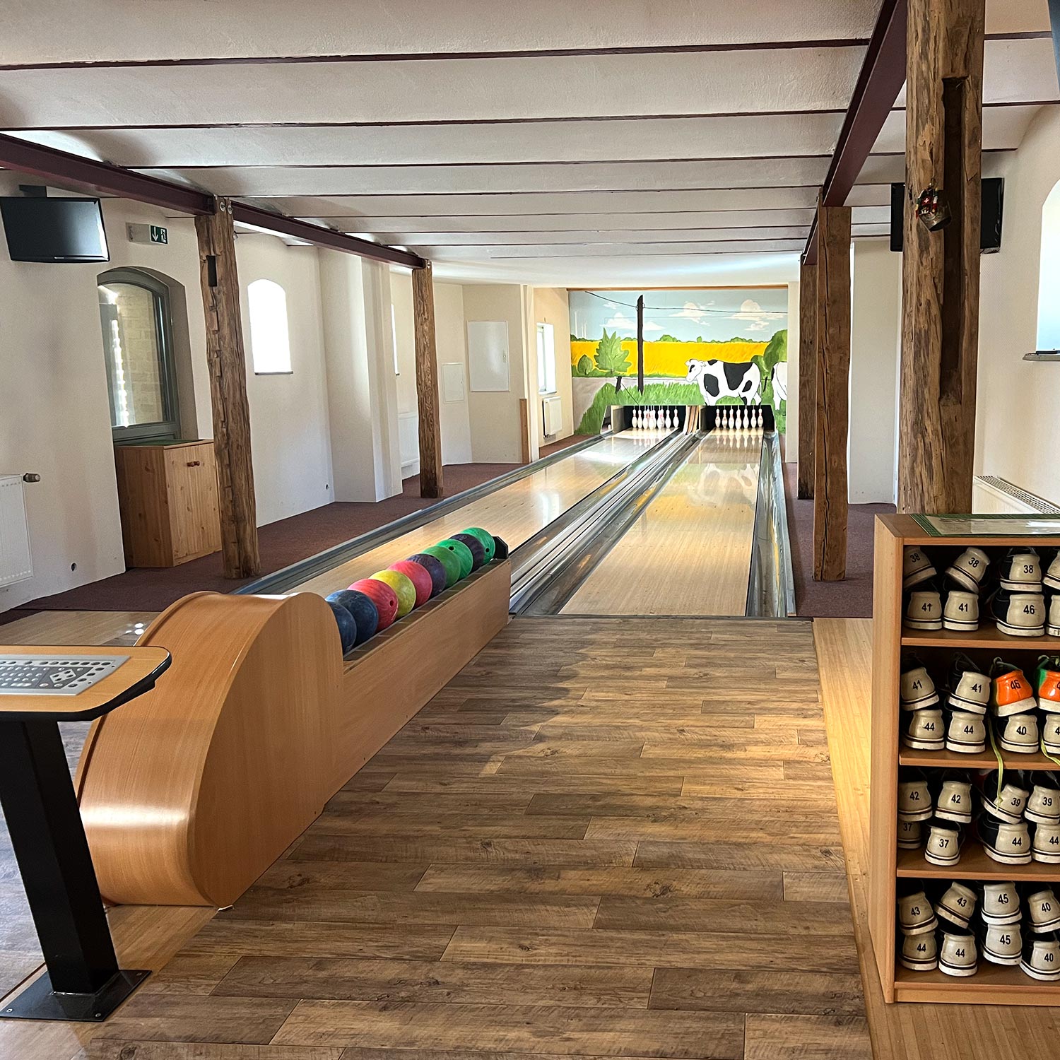 Es stehen 2 moderne Bahnen zur gemeinsamen Nutzung zur Verfügung. Der großzügige Vorraum bietet Platz für bis zu 24 Personen und eignet sich für Familienfeiern, Kindergeburtstage oder vergnügte Bowlingrunden.