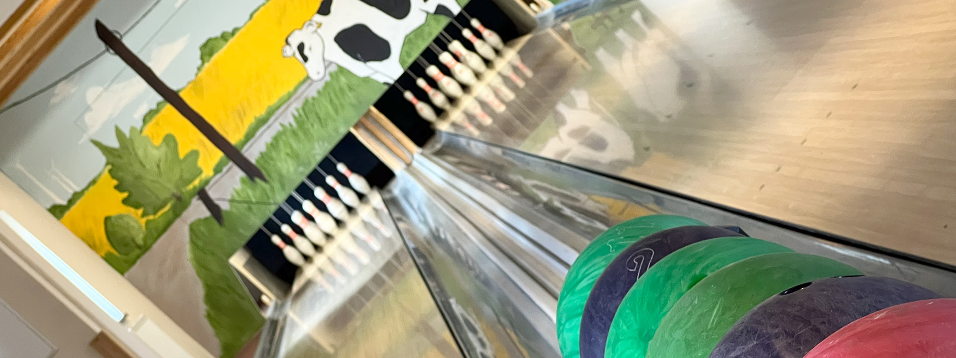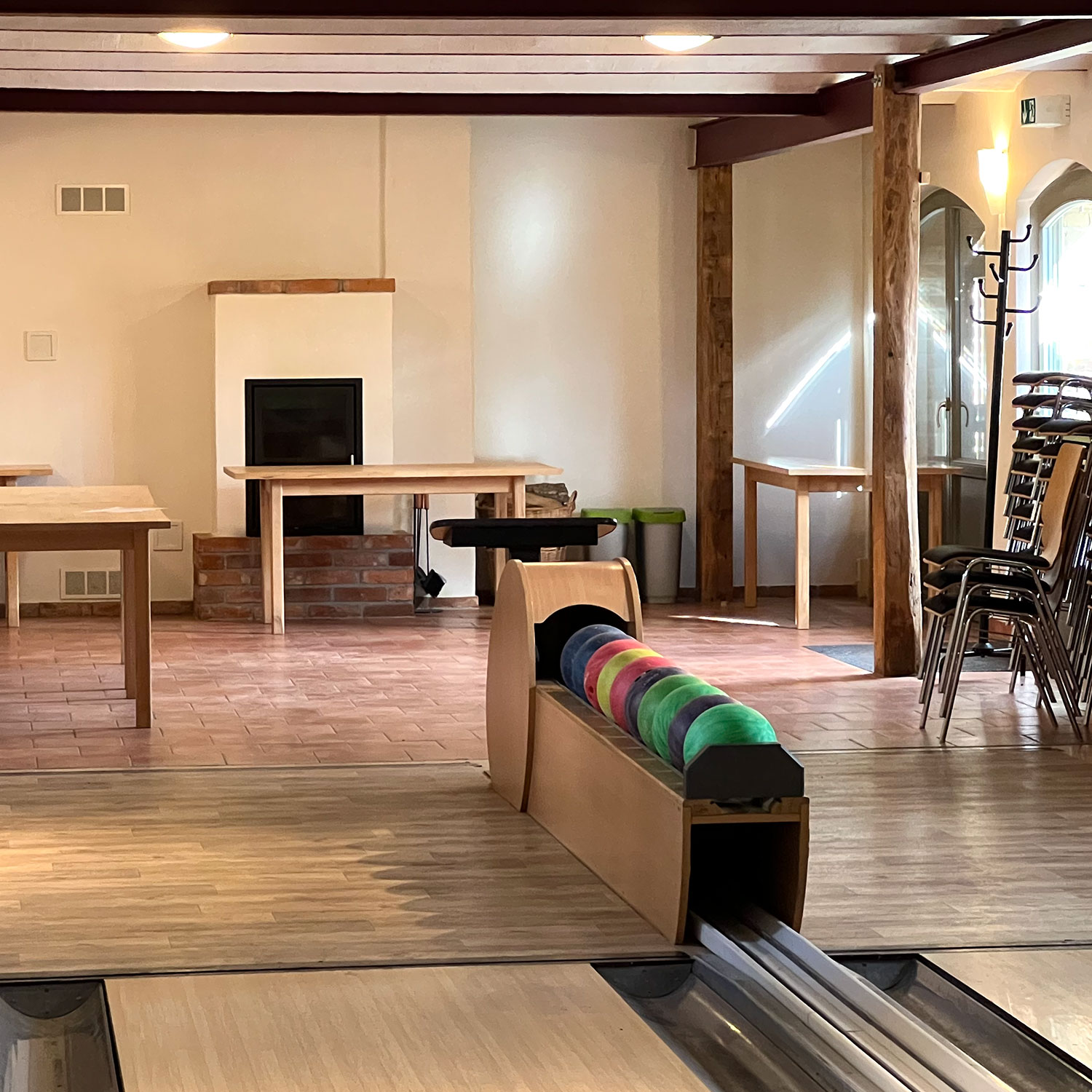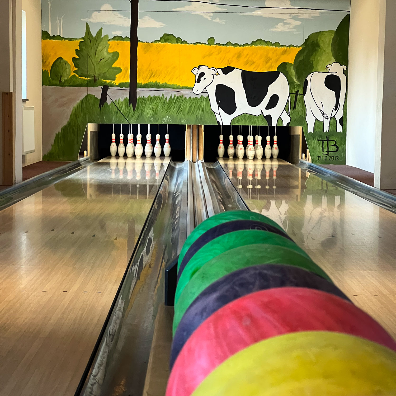 Es stehen 2 moderne Bahnen zur gemeinsamen Nutzung zur Verfügung. Der großzügige Vorraum bietet Platz für bis zu 24 Personen und eignet sich für Familienfeiern, Kindergeburtstage oder vergnügte Bowlingrunden.